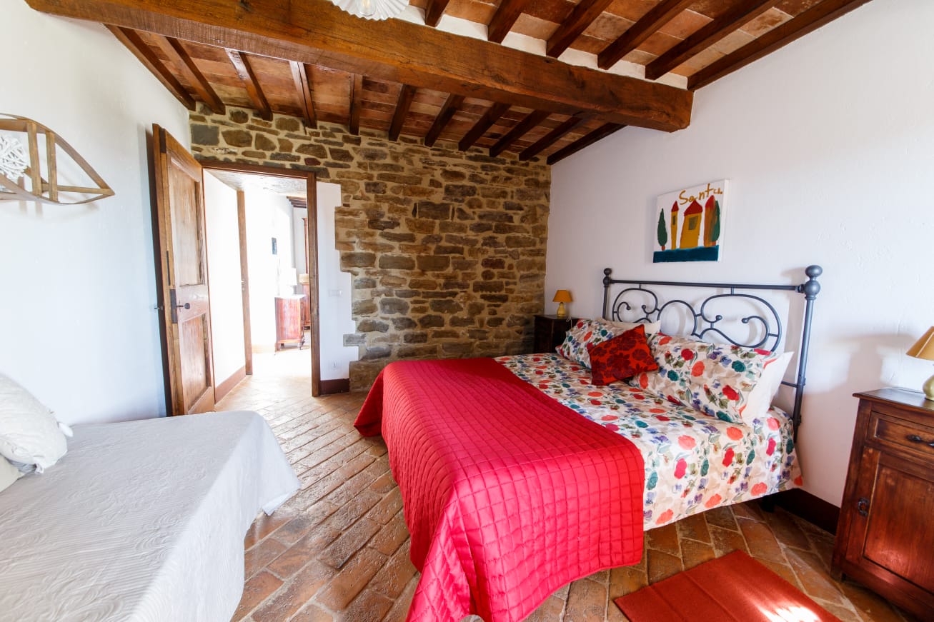 The B&B Le Terre di Caprano is located in a historic farmhouse dating back to around 1100, situated in Città di Castello (PG). The B&B includes 1 apartment (4 beds), 1 loft room (3 beds), and 1 double room (2 beds). The property also features a common room (approximately 60sqm) where breakfasts are served and guests can enjoy reading a good book by the fireplace. Guests who wish can be accompanied by a certified guide for excursions in the Alta Valle del Tevere. E-bikes are also available for rental. The owners provide guests with a Jeep (4 seats) to and from the nearest stopping point of the Sentiero Italia CAI.