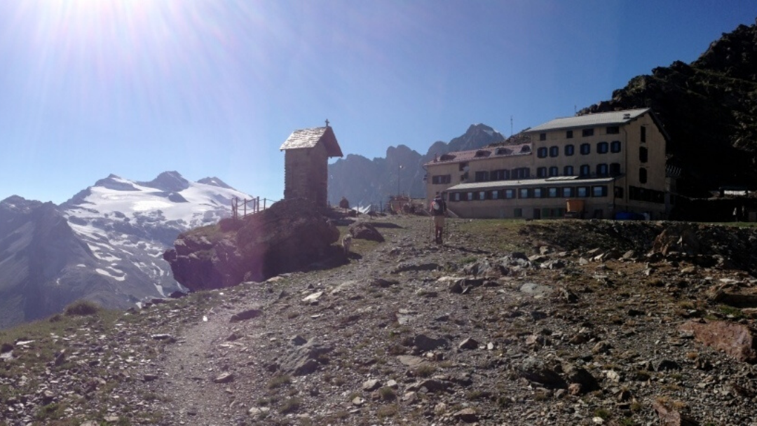 The stage of medium length and moderate elevation gain takes you into the heart of the high mountains at the foot of Pizzo Bernina. Leaving Lago Palù, a short ascent leads along the ski slopes, which you descend until reaching the departure of the cable car that ascends to Monte Motta. Here, you turn north and begin the long climb that will only end at Rifugio Marinelli Bombardieri at an altitude of 2813 meters. Along the way, you first reach Rifugio Musella and then Carate Brianza, where you can take intermediate breaks. At the end of the stage, you can observe the high-altitude environments dominated by glaciers and Pizzo Bernina, the easternmost peak of the Alps that rises above 4000 meters.