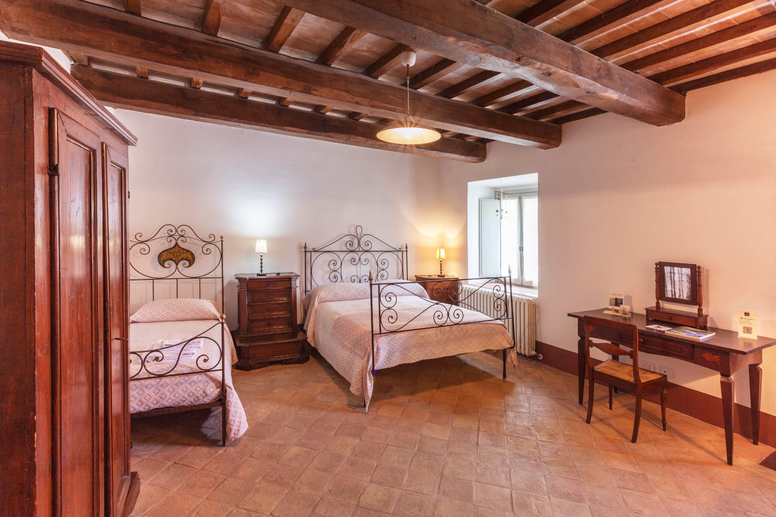 Lo spirito che ci anima come proprietari e gestori di FonteAntica è quello di trasmettere la passione per l’accoglienza e l’amore per la nostra regione e il nostro territorio. Aprire la nostra casa e far conoscere le nostre origini rappresenta per noi il coronamento di un sogno diventato realtà nel 2008. Il casale del 700 è stato interamente ristrutturato puntando alla conservazione più fedele degli ambienti, comprese le dieci camere tutte con bagno (2 adatte ad accogliere persone diversamente abili), arredate con mobili originali del 700/800 e con materiali di pregio per assicurare confort e allo stesso tempo la massima autenticità. Per gli escursionisti, gli amanti del trekking e delle mountainbike abbiamo inaugurato alla fine del 2021 un ostello dedicato, ricavato nell’antica cantina, per massimo 10 persone alloggiate con brandine e materasso, bagni, docce e possibilità di uso cucina. Nel ristorante ricavato nell’antico granaio in pietra la cucina è rigorosamente umbra con particolare attenzione alla selezione e alla genuinità dei prodotti aziendali e del territorio; il menù è fisso e riservato agli ospiti che alloggiano nella struttura. Una ricca colazione con buffet interamente casalingo vi aspetta per addolcire il vostro risveglio. I servizi e le attività per i nostri ospiti proposte all’interno sono sala lettura con camino, biliardo, biliardino, freccette, giochi di società e spazio per piccole riunioni, degustazioni e ricevimenti. Nell’ampio parco esterno un lavandeto con oltre 2.000 piante, aree relax, le poltrone volanti, il parco giochi per bambini, una bio-sauna esterna con vetrata panoramica ricavata in una botte e una tinozza in legno con idromassaggio e cromoterapia con acqua riscaldata con stufa a legna, punto noleggio e assistenza di e-bike e mountainbike , ping pong, tiro con l’arco e bocce. Organizziamo corsi sia di cucina, di norcineria, degustazioni di prodotti tipici, serate a tea, corsi di escursionismo, piccoli eventi aziendali di team building e incentive. Proponiamo ritiri yoga e NatureTherapy e altre pratiche olistiche, trekking guidati nei Sibillini a piedi, con i muli, a cavallo e in mountainbike.